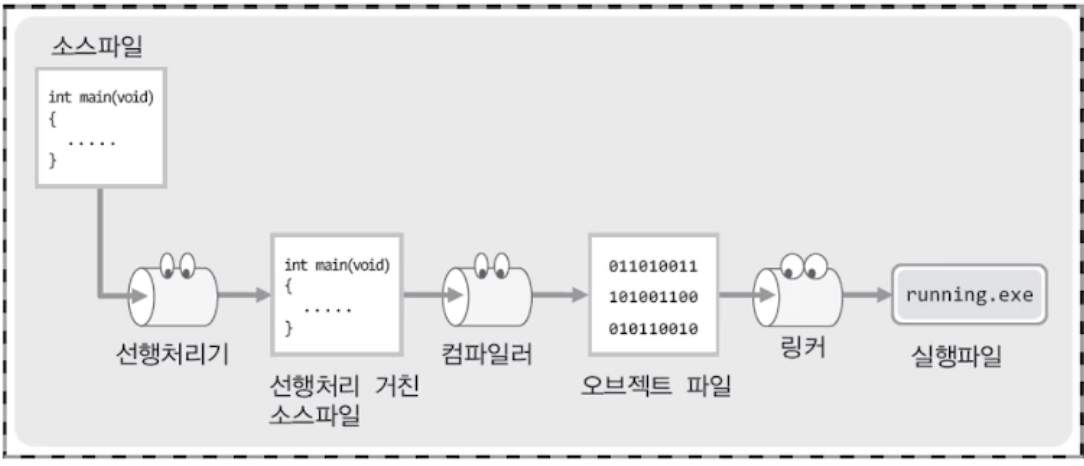 일반적으로 컴파일의 과정에 포함이 되어 이야기하지만, 선행처리의 과정과 컴파일의 과정은 구분이 된다.