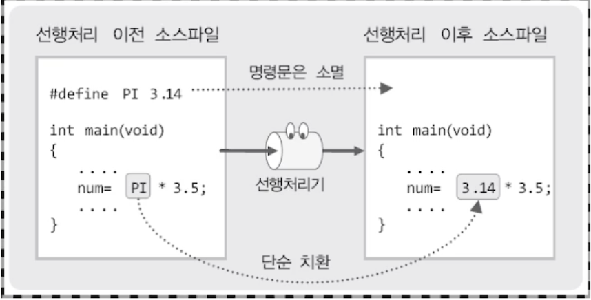 컴파일러에 비해서 선행처리기의 역할은 매우 간단하다. '단순한 치환'의 작업을 거친다. 그리고 선행처리기에게 무엇인가를 명령하는 문장은 #으로 시작한다.