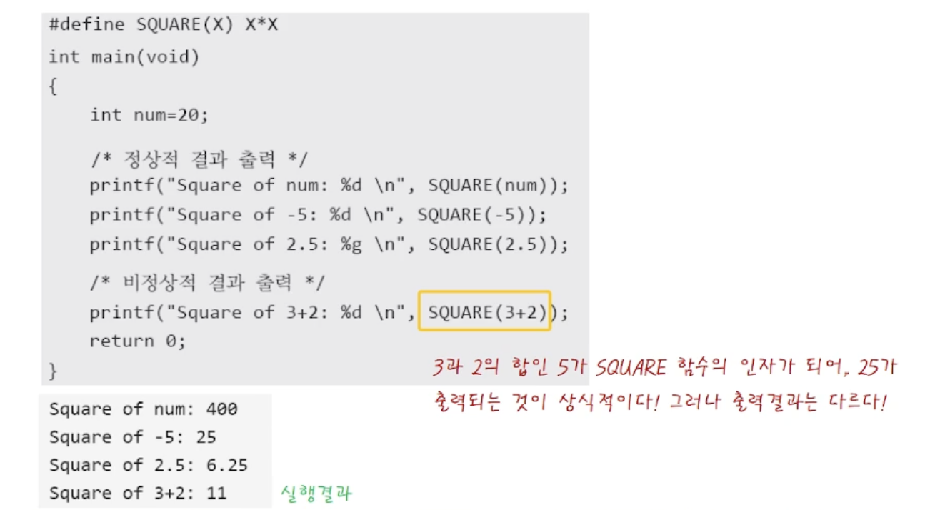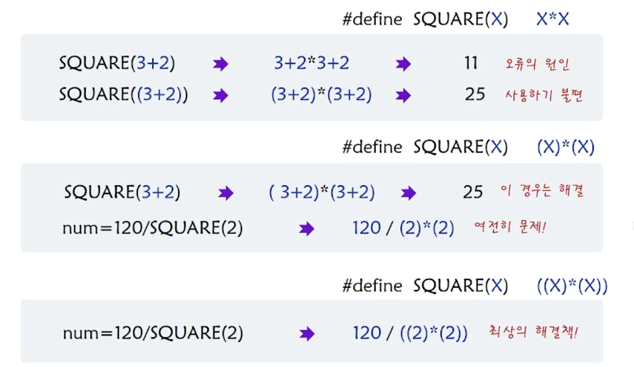 왜냐하면 오류를 발견하는건 선행처리 후 컴파일러에 의해서 에러가 감지되기 때문에 디버깅이 어렵다.