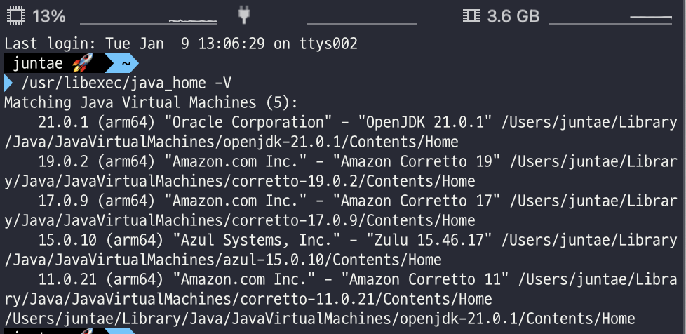 이를 통해서 내 PC에 설치되어있는 jdk들을 확인할 수 있었고, 이중에서 프로젝트와 맞는 버전은 11버전이다.