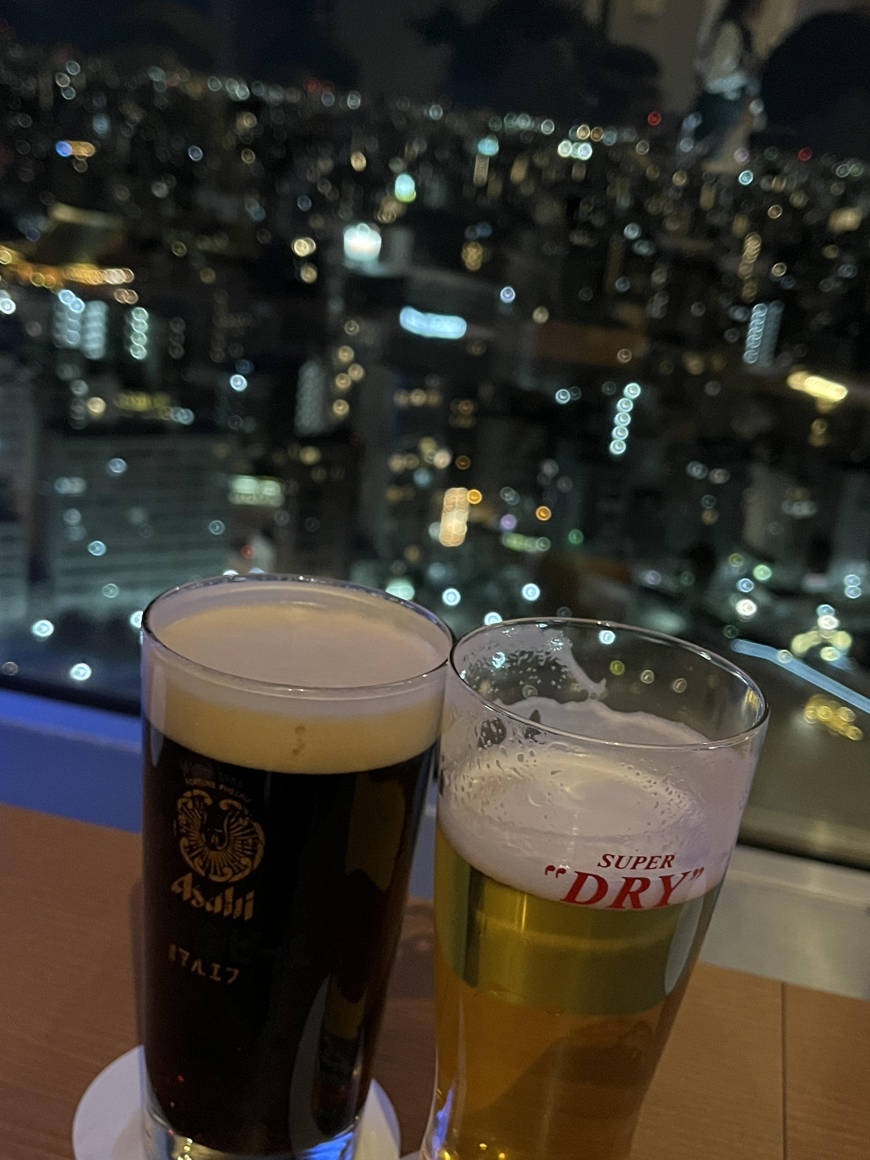 그 다음 첫날의 마지막 코스 아사히 맥주 본사 라운지바에서 맥주마시기!! 건물에 금색 응아?가 있어서 뭔지 궁금했다...아직도 궁금하다 아사히 건물이 아닐지도..