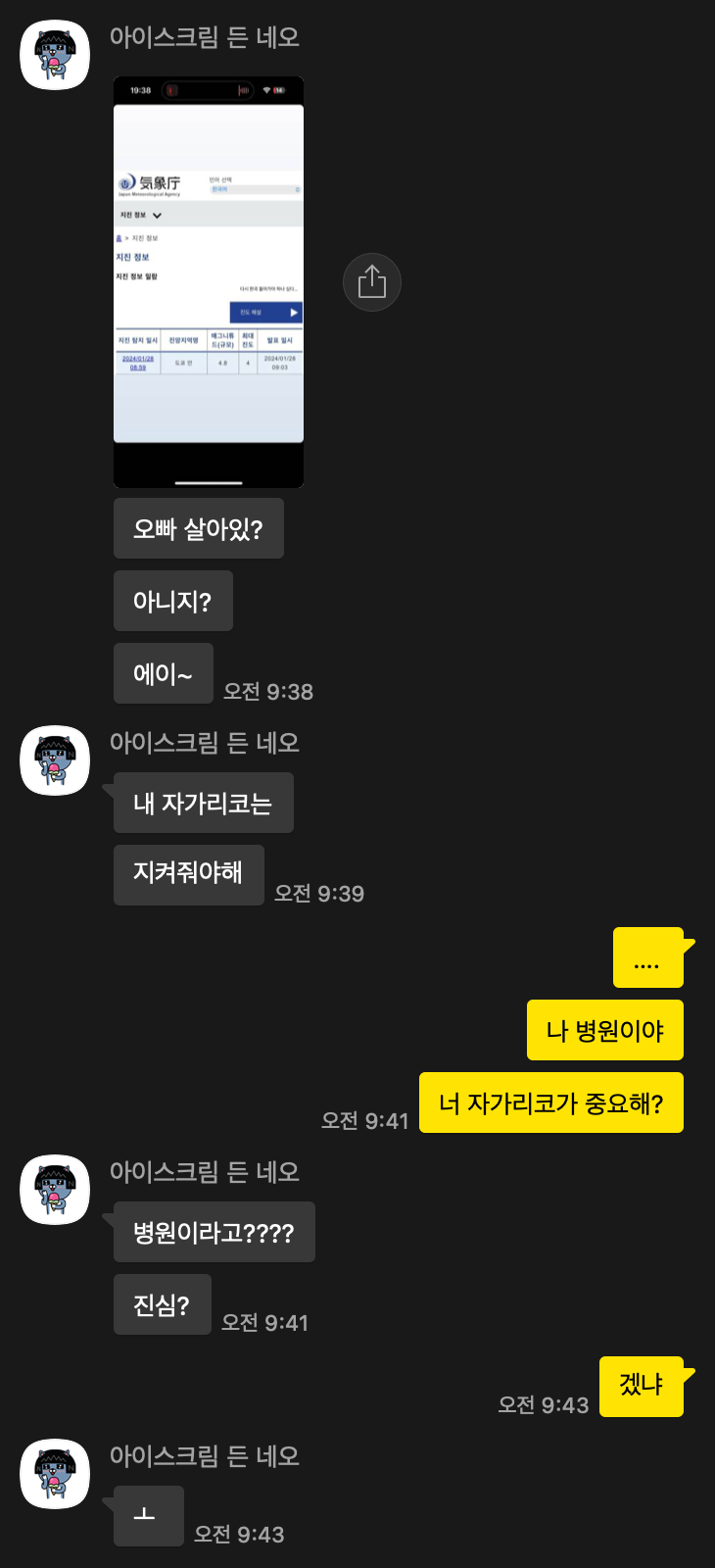 아 그리고 살면서 처음으로 진도 4.8짜리 지진을 느껴봤는데 디스코 팡팡 타는 느낌이더라... 좋은 친구들을 뒀어...
