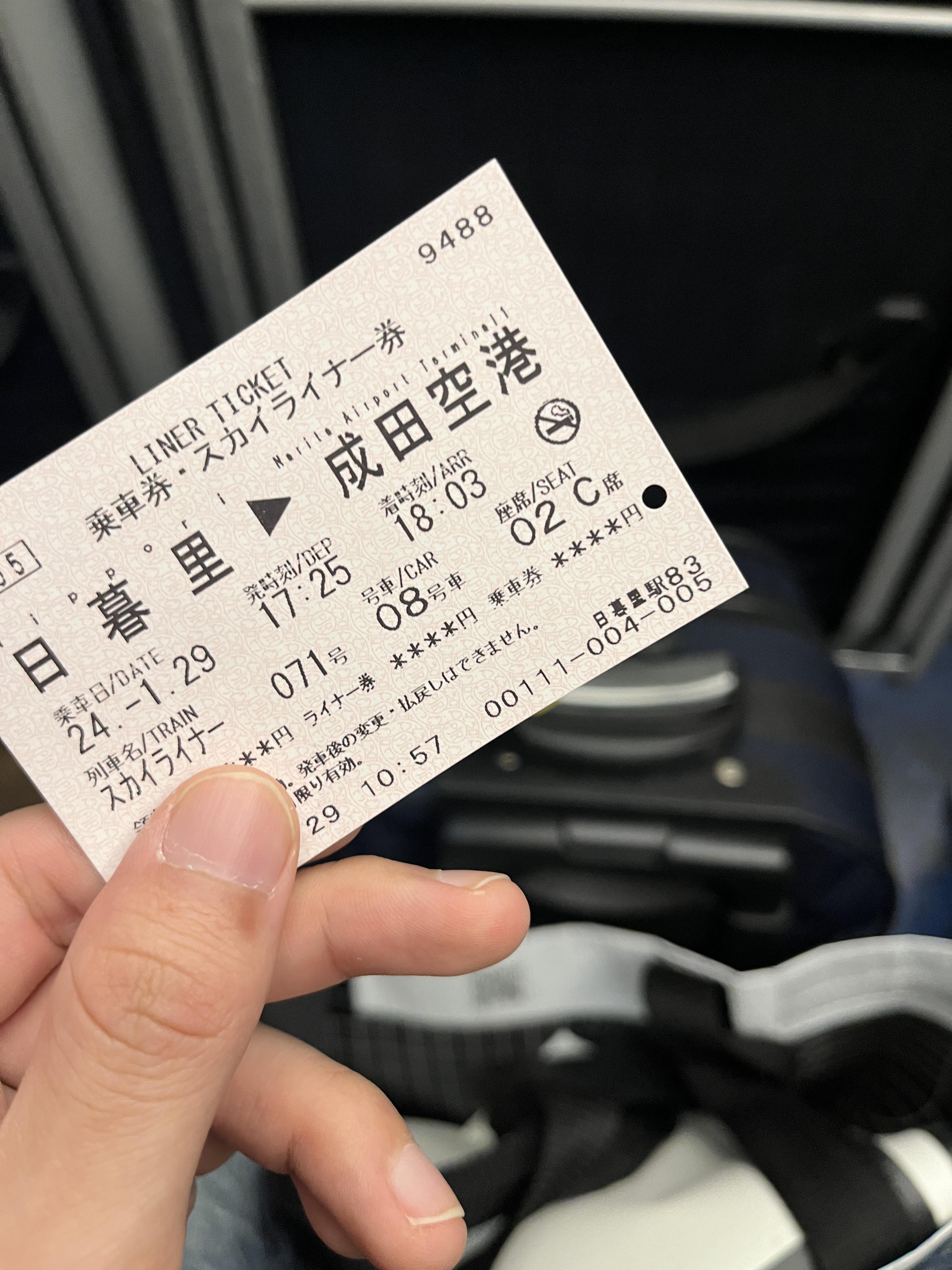 우리는 나리타 공항에서 닛포리까지 가는 스카이라이너를 타고 도쿄 중심으로 이동하기로 했당