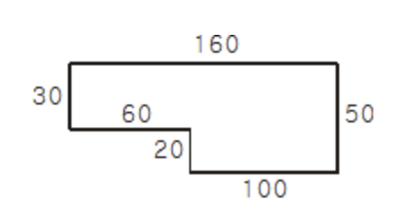 여기서 보이는 제일긴 가로 160과 제일긴 세로 50을 기준으로 했을 때, 잘려나간 세로의 길이는 제일긴 가로 160의 양옆에 있는 50과30의 차이이다. 그리고 잘려나간 가로의 길이는 제일긴 세로 50의 양옆에 있는 160과 100의 차이이다.