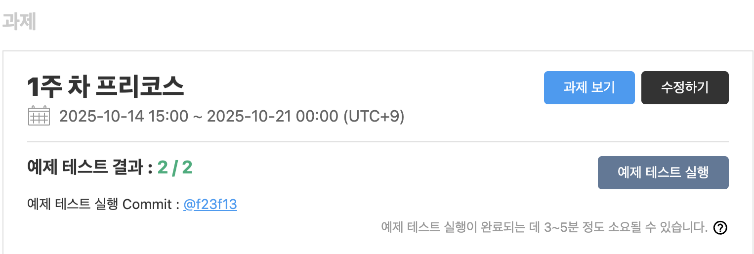 | 우아한 테크코스[프리코스] 최종 코딩 테스트 회고록 (1) | 2026.01.23 |
