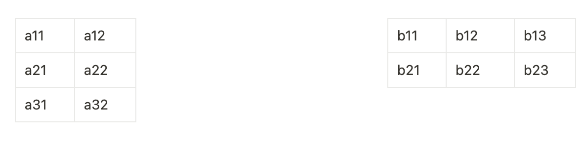 행렬 곱은 a11*b11+a12*b21, a11*b12+a12*b22, a11*b13+a12*b23