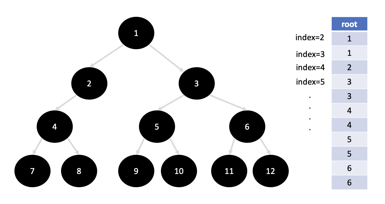 1과 연결된 노드는 2,3이고 2와 연결된 노드는 4, 3과 연결된 노드는 5,6 ... 이런 식으로 되어 있는데, 그러면 2와 3의 부모 노드는 1이고 4의 부모 노드는 2이다. 5,6의 부모 노드는 3이다. 그러면 BFS로 탐색을 진행한다고 하면 부모노드가 무엇인지 저장할 배열의 1에는 무엇을 넣던 상관없다. 그리고 2와 3에는 부모 노드인 1을 넣는다. 그리고 2의 인접 노드인 4에는 2를 넣고, 3의 인접노드 5,6에는 3을 넣는다.
