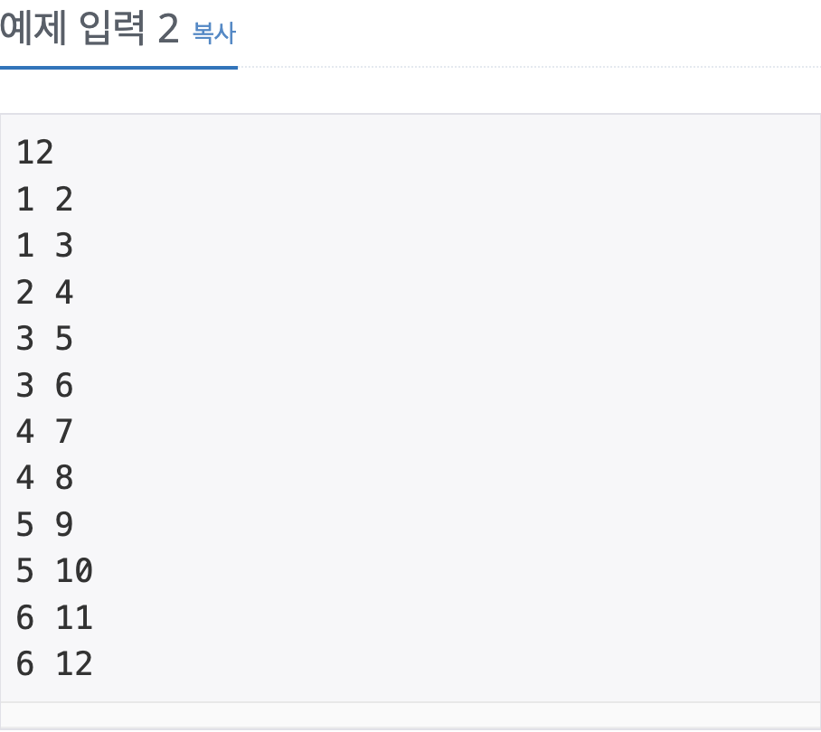 예제에서 주어진 입력을 BFS에서 사용하는 간선 추가를 위한 입력으로 생각하고, 시작 노드를 1로 해서 BFS로 탐색을 진행하면,